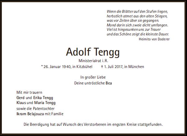 Die Beerdigung hat auf Wunsch des Verstorbenen in aller Stille stattgefunden.