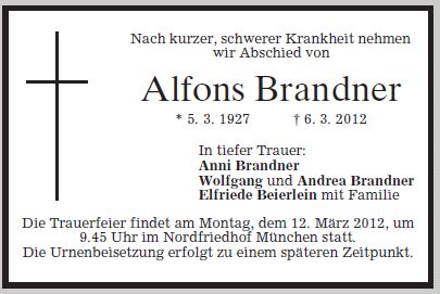Trauerfeier am Montag, dem 12. März 2012, um 9:45 Uhr im Nordfriedhof München