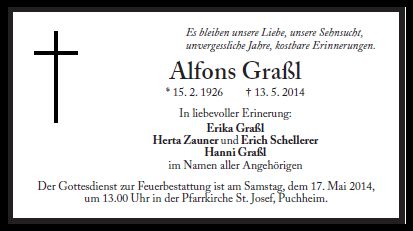 Gottesdienst am Samstag, dem 17. Mai 2014, um 13:00 Uhr in der Pfarrkirche St. Josef, Puchheim