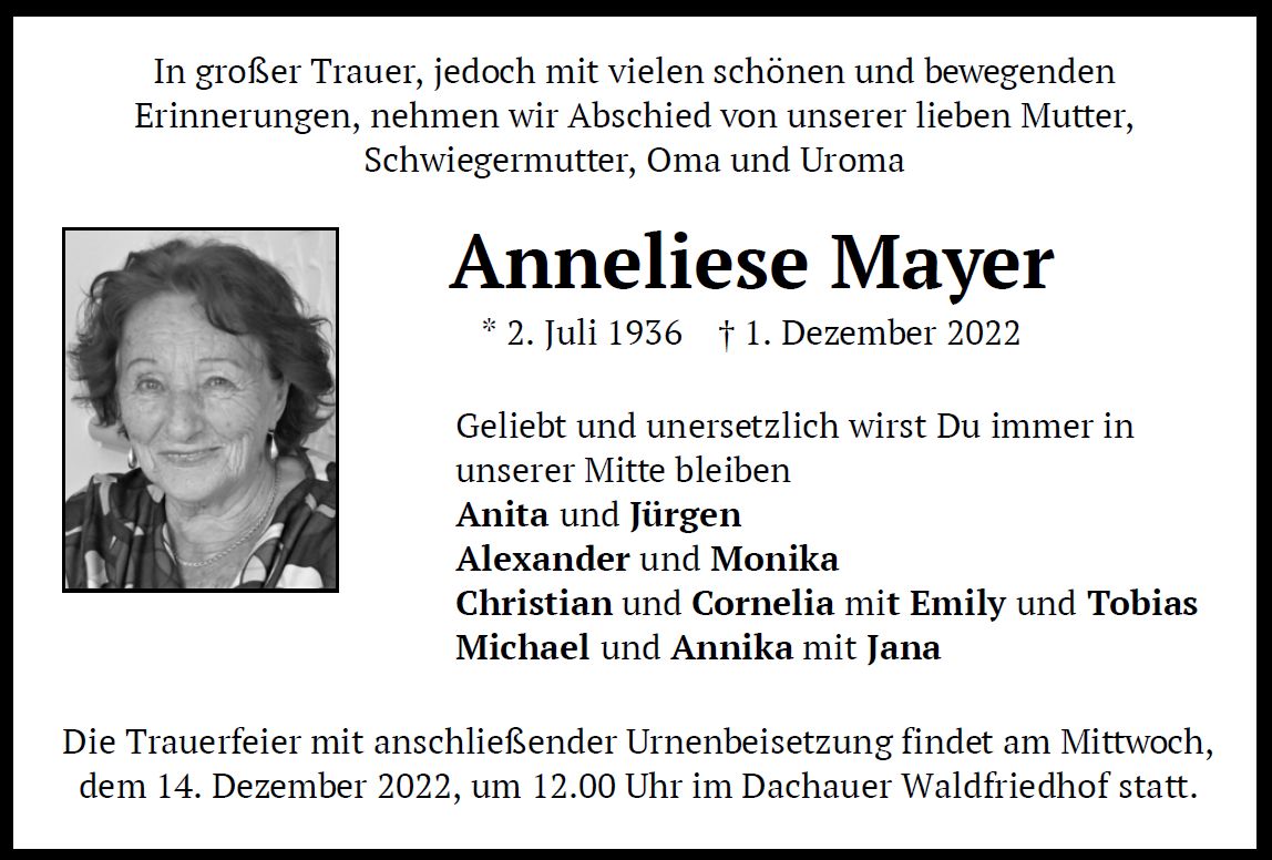 Trauerfeier am Mittwoch, dem 14. Dezember 2022, um 12:00 Uhr im Dachauer Waldfriedhof Beisetzung am Mittwoch, dem 14. Dezember 2022, um 12:00 Uhr im Dachauer Waldfriedhof