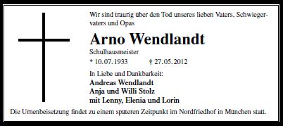 Trauerfeier mit anschließender Urnenbeisetzung am Dienstag, dem 26. Juni 2012 um 12:00 Uhr im Nordfriedhof München |
