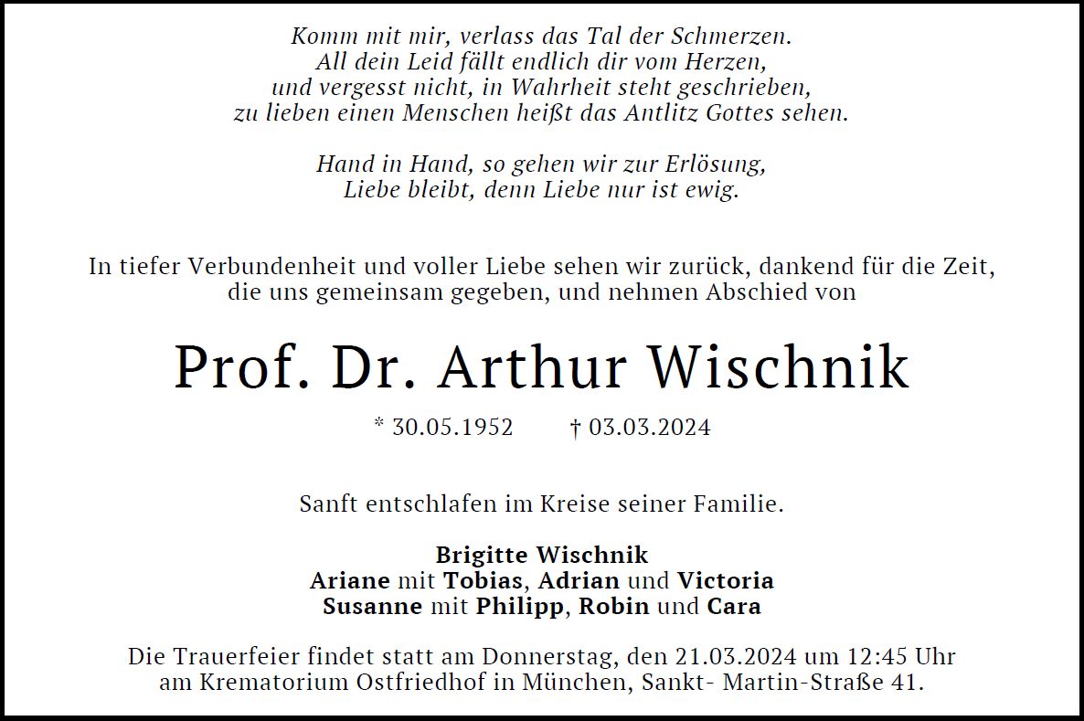 Wir trauern um Herrn Prof.Dr. Arthur Wischnik Frauenarzt * 30.05.1952 † 03.03.2024 |