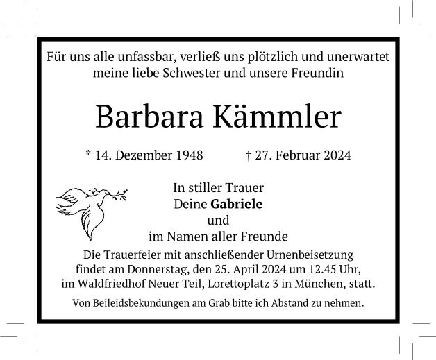 Wir trauern um Frau Barbara Kämmler Kaufmännische Angestellte * 14.12.1948 † 27.02.2024 |