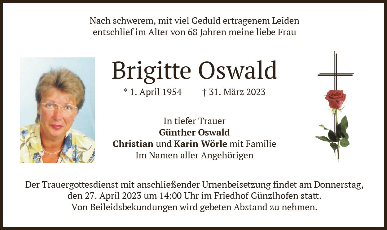 Wir trauern um Frau Brigitte Oswald * 01.04.1954 † 31.03.2023 |