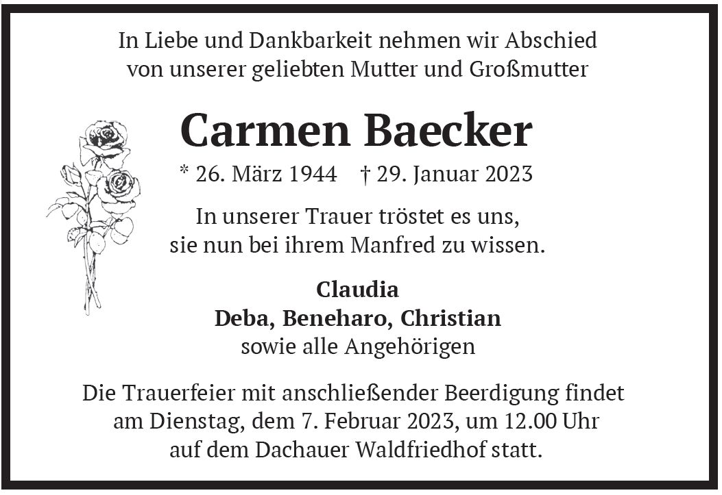 Trauerfeier mit anschließender Beerdigung am Dienstag, dem 7. Februar 2023, um 12:00 Uhr im Dachauer Waldfriedhof.