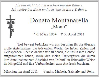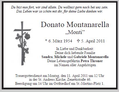 Wir trauern um Herrn Donato Montanarella "Monti" * 06.03.1954 † 05.04.2011 |