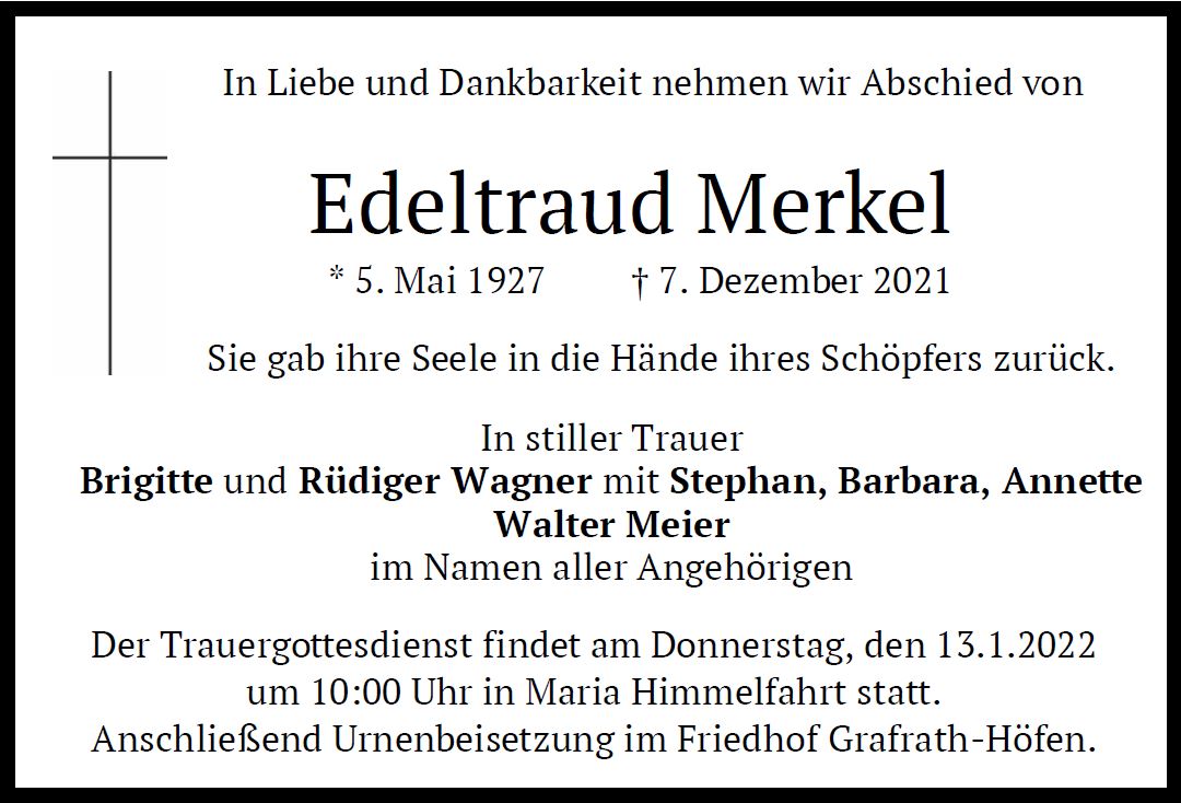 Wir trauern um Frau Edeltraud Merkel geb. Merkel * 05.05.1927 † 07.12.2021 |