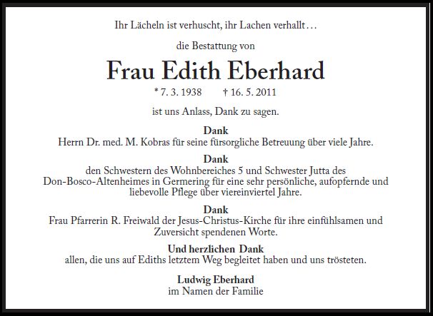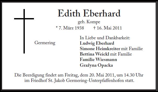 Beerdigung am Freitag, dem 20. Mai 2011, um 14:30 Uhr in Germering - St. Jakob