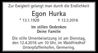 Die Urnenbeisetzung ist am Dienstag, den 12.4.2016 um 10 Uhr, im Waldfriedhof Germering