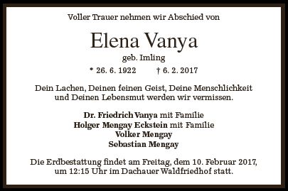 Beerdigung am Freitag, dem 10. Februar 2017, um 12:15 Uhr im Dachauer Waldfriedhof.