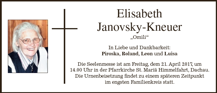 Frau Elisabeth Janovsky- Kneuer geb. Kneuer