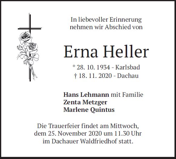 Trauerfeier am Mittwoch, dem 25. November 2020, um 11:30 Uhr im Dachauer Waldfriedhof.