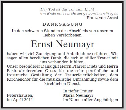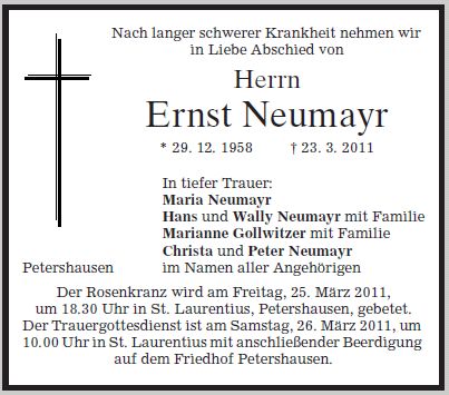 Rosenkranz am Freitag, 25.3.2011, um 18:30 Uhr in St. Laurentius, Petershausen. Gottesdienst am Samstag, dem 26. März 2011, um 10:00 Uhr in St. Laurentius, Petershausen