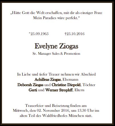 Beerdigung am Mittwoch, den 2. November 2016, um 13:30 Uhr im Münchner Waldfriedhof Alter Teil
