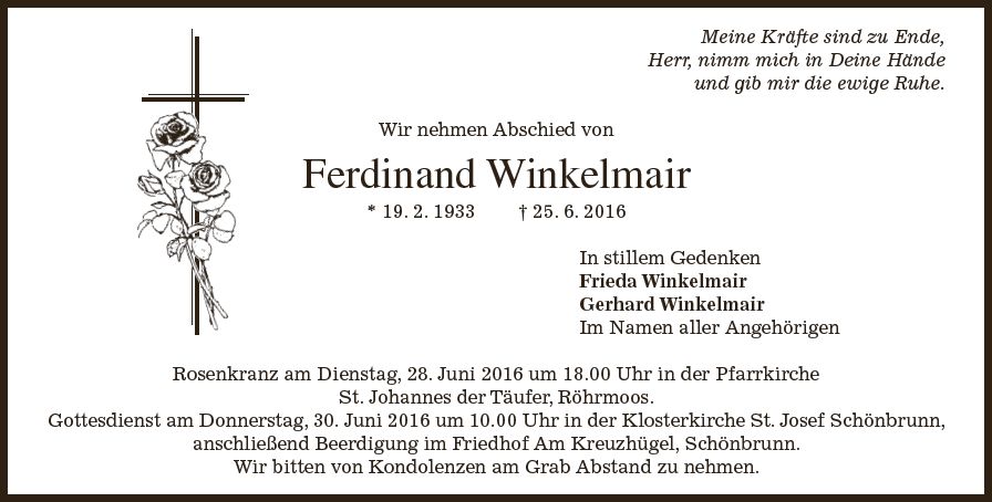 Wir trauern um Herrn Ferdinand Winkelmair Elektromeister * 19.02.1933 † 25.06.2016 |