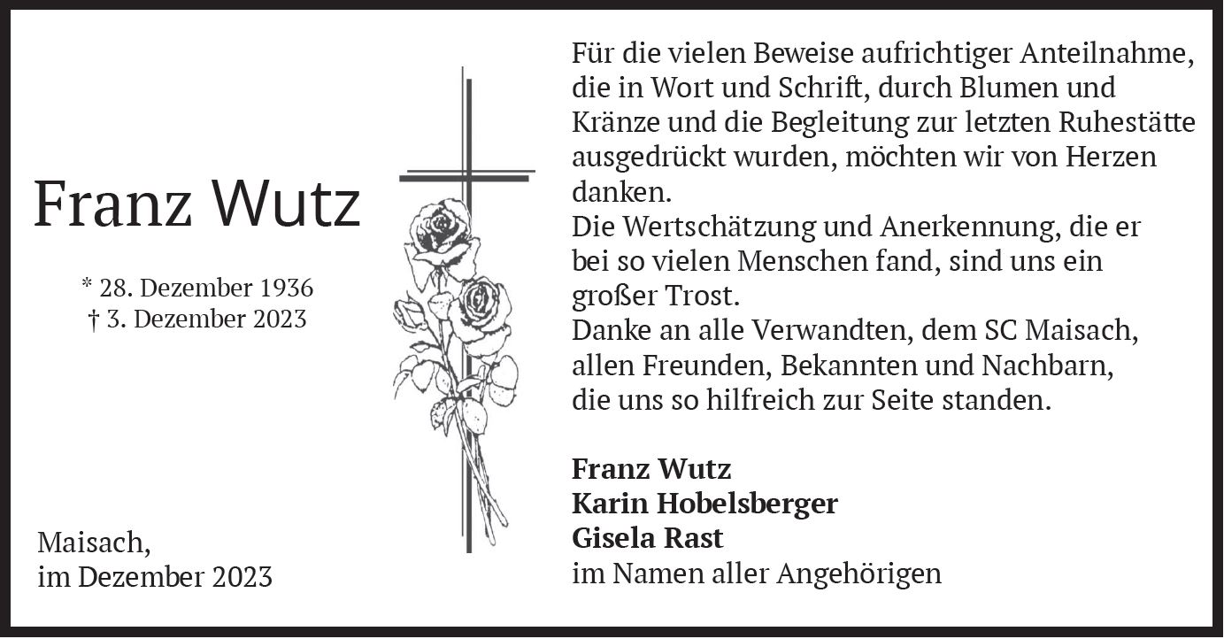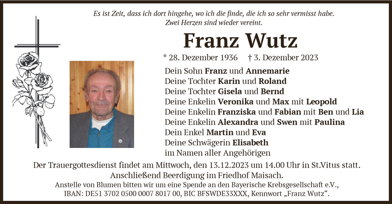 Wir trauern um Herrn Franz Josef Wutz * 28.12.1936 † 03.12.2023 |