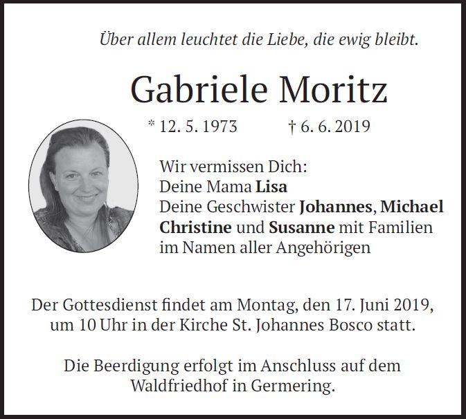 Wir trauern um Frau Gabriele Moritz * 12.05.1973 † 06.06.2019 |