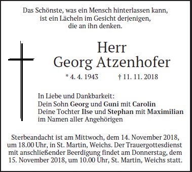 Wir trauern um Herrn Georg Atzenhofer Schmied * 04.04.1943 † 11.11.2018 |