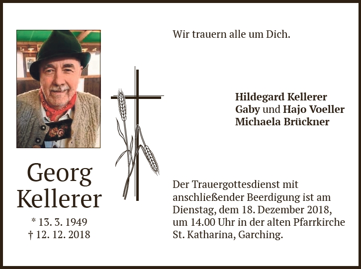 Wir trauern um Herrn Georg Kellerer Landwirt * 13.03.1949 † 12.12.2018 |