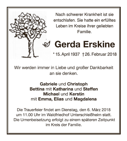 Frau Gerda Erskine geb. Arnold