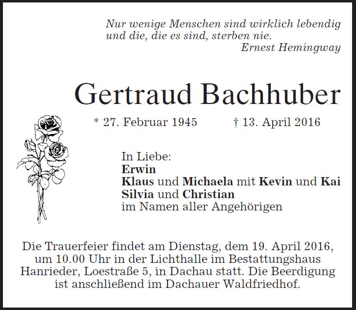 Hanrieder, Loestraße 5, in Dachau statt. Die Beerdigung