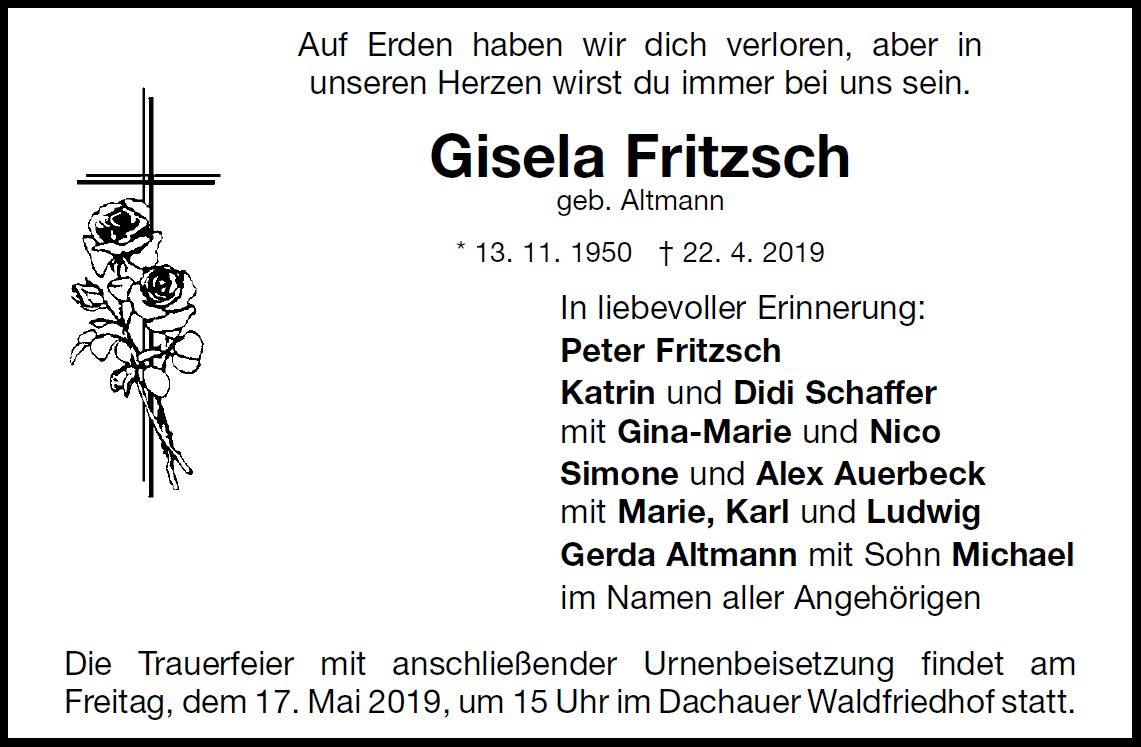 Trauerfeier mit anschließender Urnenbeisetzung ist am Freitag, dem 17.05.2019 um 15:00 Uhr im Dachauer Waldfriedhof.