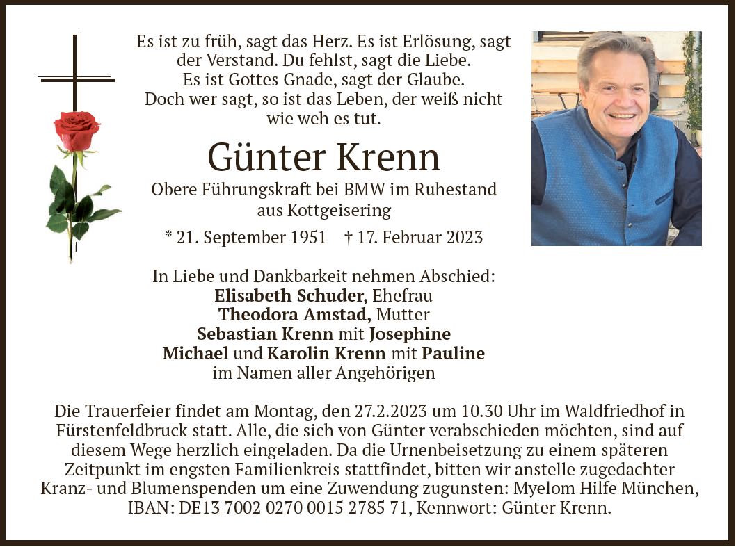 Wir trauern um Herrn Günter Krenn * 21.09.1951 † 17.02.2023 |
