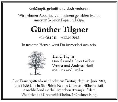 Gottesdienst am Freitag, dem 28.6.2013 um 11:30 Uhr in der Pfarrkirche St. Ulrich - Neu in Unterschleißheim. Anschließend Urnenbeisetzung im Waldfriedhof Unterschleißheim