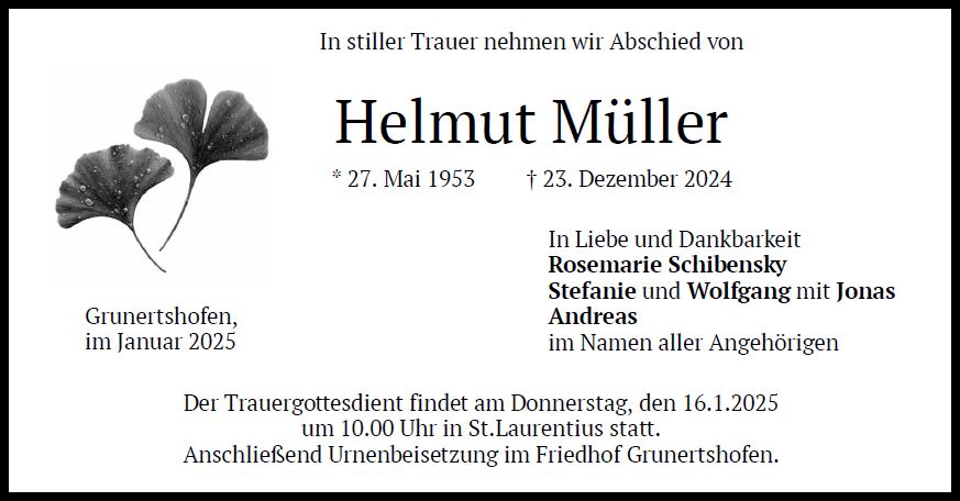 Wir trauern um Herrn Helmut Müller * 27.05.1953 † 23.12.2024 |