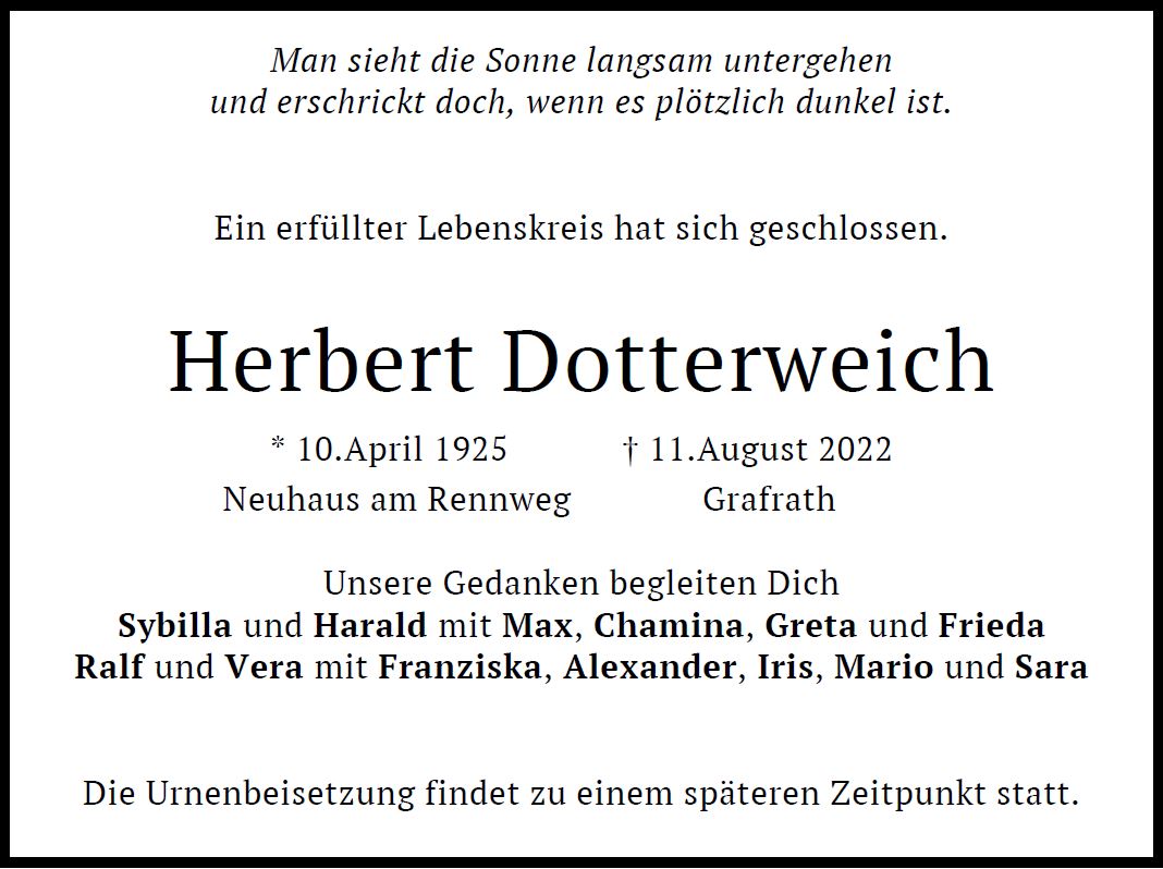 Gottesdienst am Mittwoch, dem 21. September 2022 um 10:00 Uhr in Maria Himmelfahrt. Beisetzung anschließend im Friedhof Grafrath - Höfen.