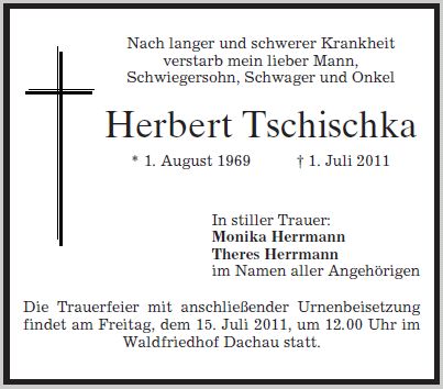 Wir trauern um Herrn Herbert Tschischka Bauzeichner * 01.08.1969 † 01.07.2011 |