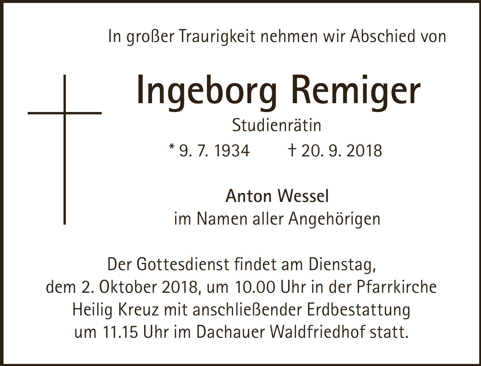 Gottesdienst am Dienstag, dem 2. Oktober 2018, um 10:00 Uhr in Heilig Kreuz. Beerdigung am Dienstag, dem 2. Oktober 2018, um 11:15 Uhr im Dachauer Waldfriedhof.