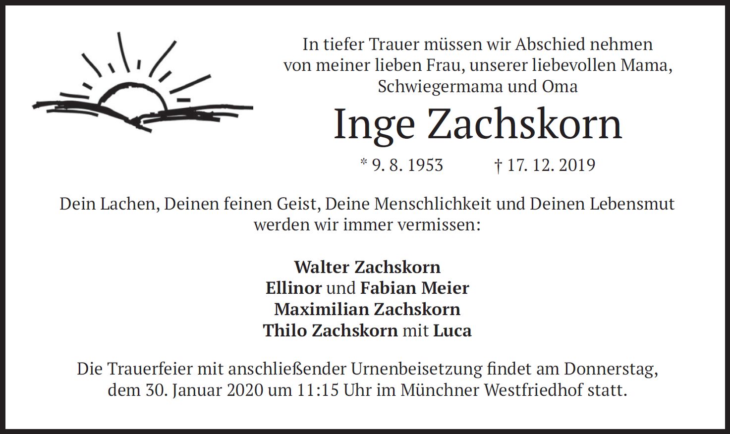 Trauerfeier mit anschließender Urnenbeisetzung am Donnerstag, dem 30. Januar 2020, um 11:15 Uhr im Westfriedhof München.