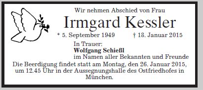 Beerdigung am Montag, dem 26. Januar 2015, um 12:45 Uhr im Münchner Ostfriedhof