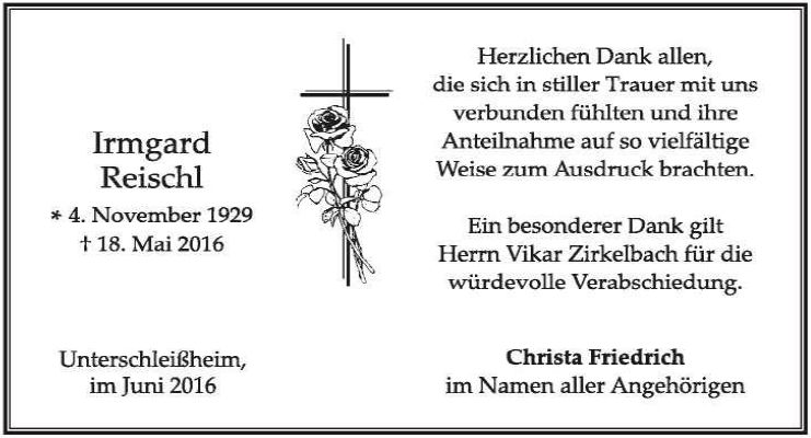 Verabschiedung am Dienstag, dem 24. Mai 2016, um 11:00 Uhr im Friedhof Lohhof an der Nelkenstraße