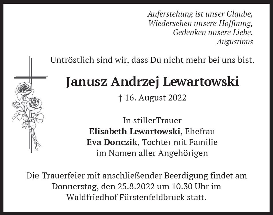 Wir trauern um Herrn Janusz Andrzej Lewartowski Psycholge * 11.07.1940 † 16.08.2022 |