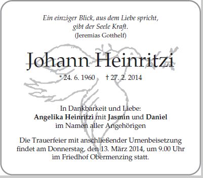 Trauerfeier mit anschließender Beisetzung am Donnerstag, dem 13. März 2014, um 09:00 Uhr im Friedhof Obermenzing.