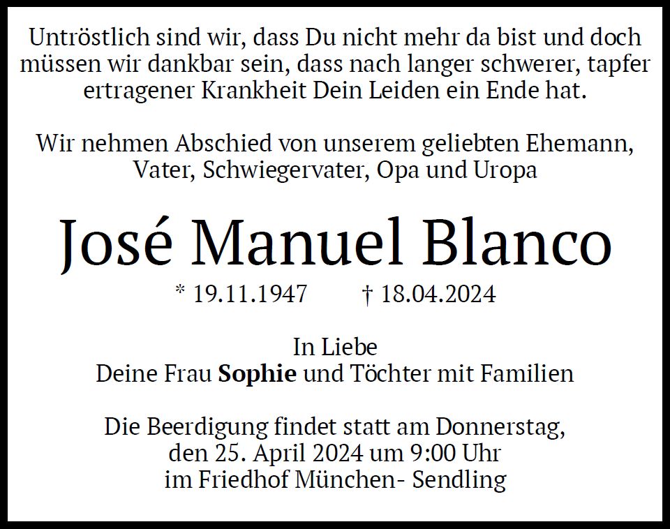Beerdigung am Donnerstag, den 25. April 2024, um 09:00 Uhr im Friedhof München Sendling