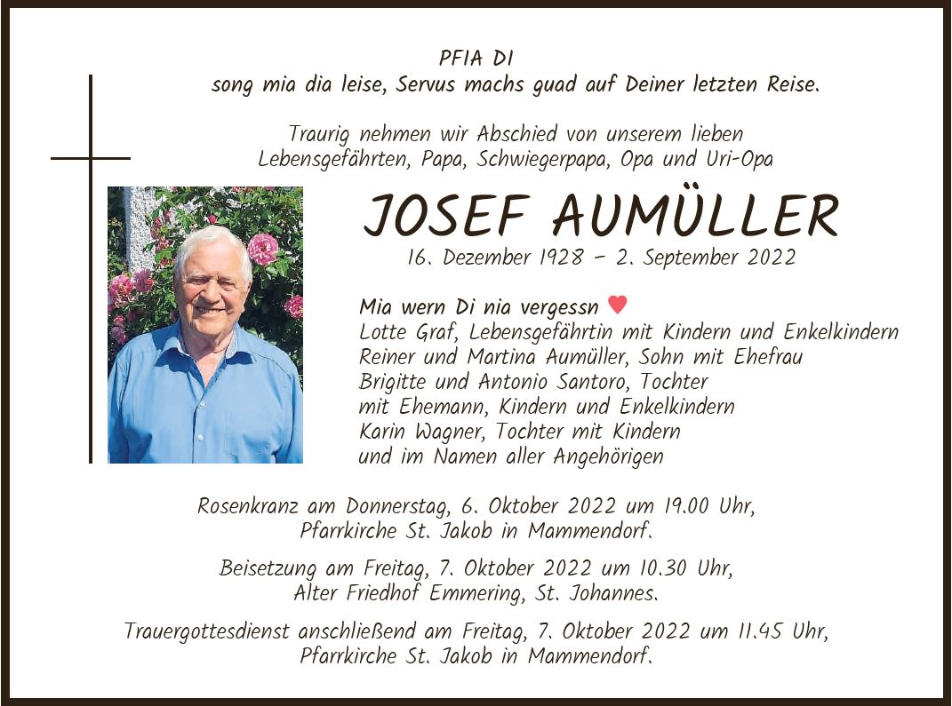Wir trauern um Herrn Josef Aumüller * 16.12.1928 † 02.09.2022 |