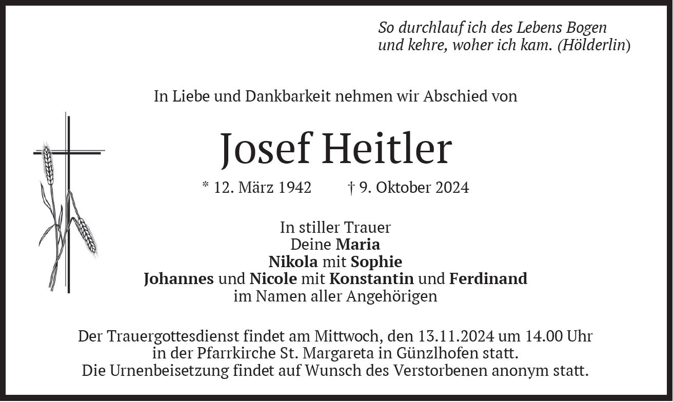 Wir trauern um Herrn Josef Heitler * 12.03.1942 † 09.10.2024 |