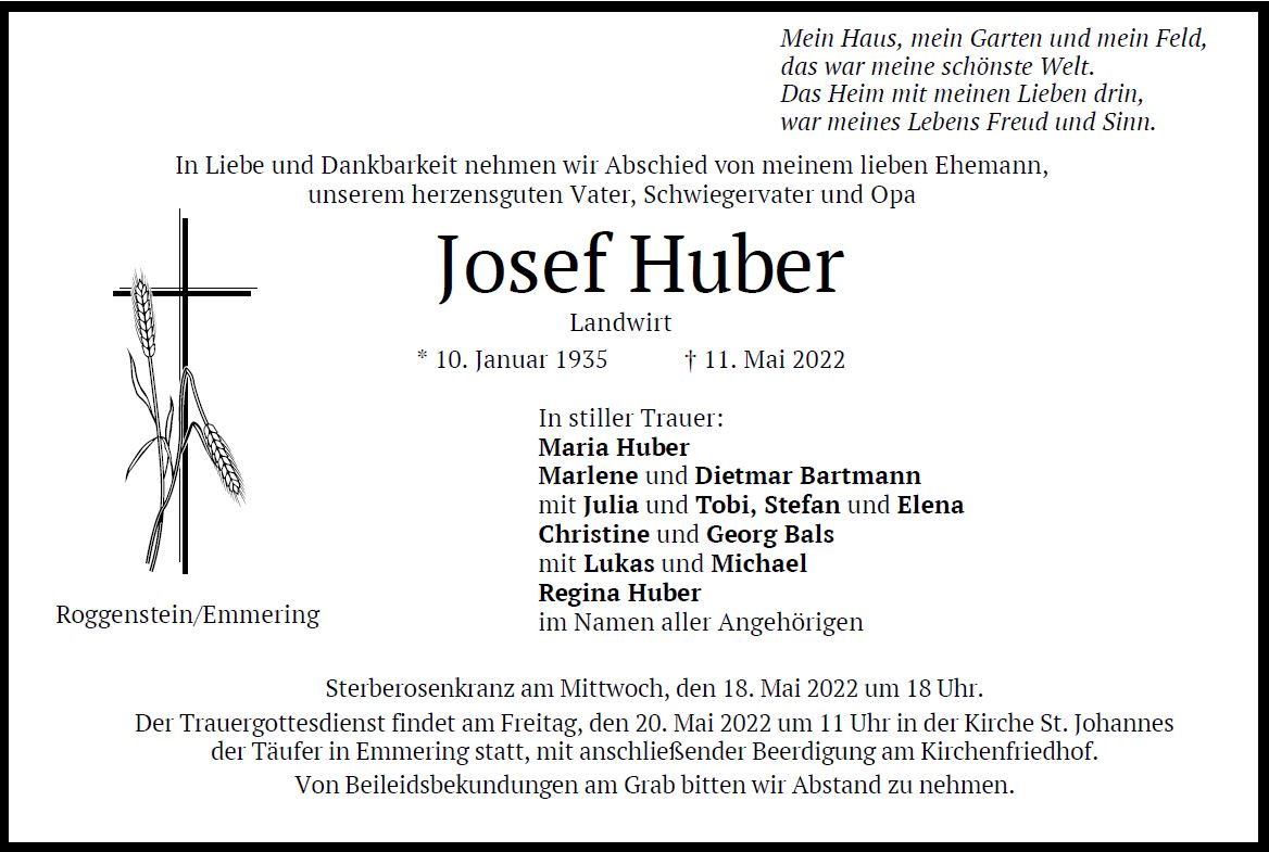 Gottesdienst am Freitag, den 20. Mai 2022, um 11:00 Uhr in der Kirche St.Johannes der Täufer Emmering anschließend Beerdigung am Kirchenfriedhof Emmering