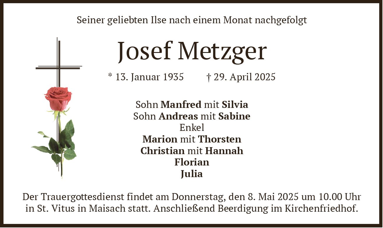 Wir trauern um Herrn Josef Metzger * 13.01.1935 † 29.04.2025 |