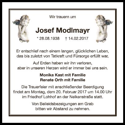 Wir trauern um Herrn Josef Modlmayr Kaufm. Angestellter * 28.08.1938 † 14.02.2017 |