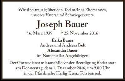 Gottesdienst mit anschließender Beerdigung am Donnerstag, den 1. Dezember 2016, um 09:00 Uhr in Hl.Kreuz Forstenried