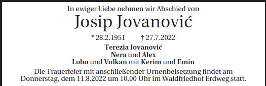 Trauerfeier mit anschließener Urnenbeisetzung am Donnerstag, dem 11. August 2022, um 10:00 Uhr im Waldfriedhof Erdweg.