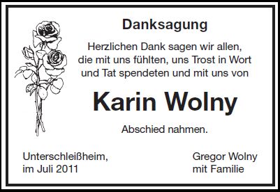 Beerdigung am Freitag, dem 24. Juni 2011, um 14:00 Uhr im Friedhof Lohhof an der Nelkenstraße