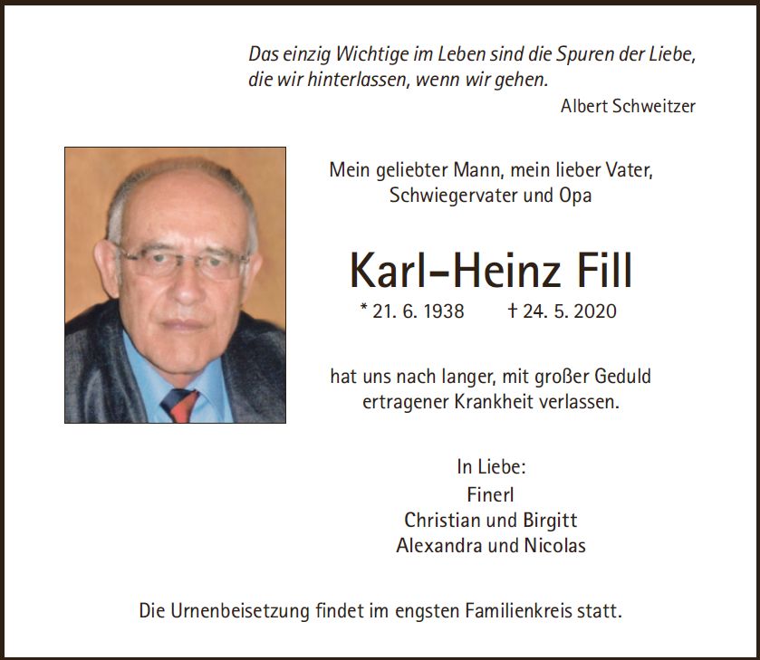 Aufgrund aktueller Vorschriften findet die Urnenbeisetzung im engsten Familienkreis statt.