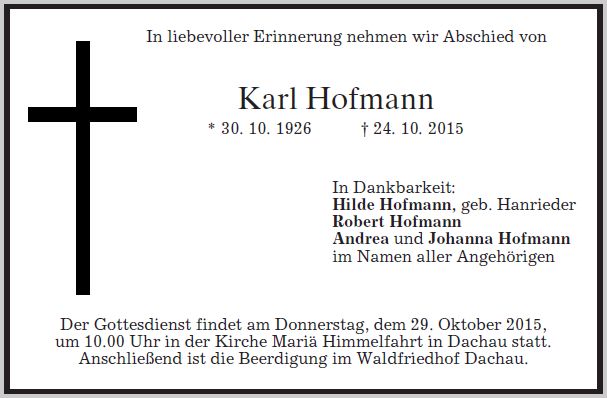 Anschließend ist die Beerdigung im Waldfriedhof Dachau.
