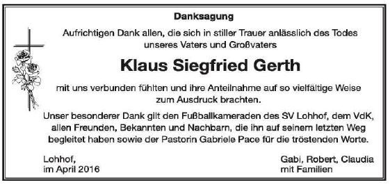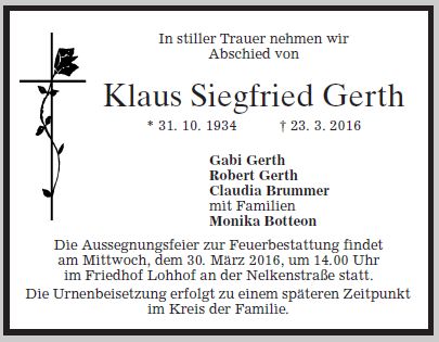 Wir trauern um Herrn Klaus Gerth Sicherheitsbeauftragter * 31.10.1934 † 23.03.2016 |