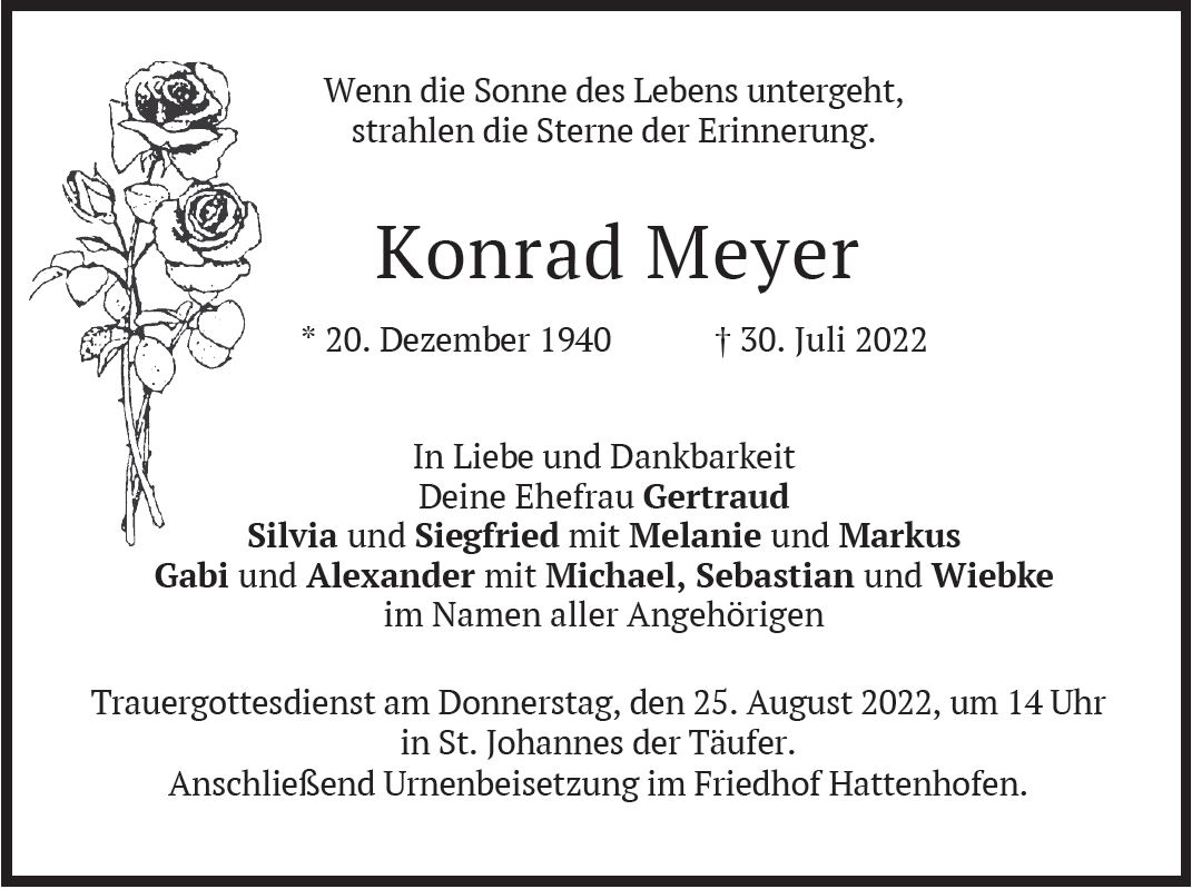 Wir trauern um Herrn Konrad Meyer * 20.12.1940 † 30.07.2022 |